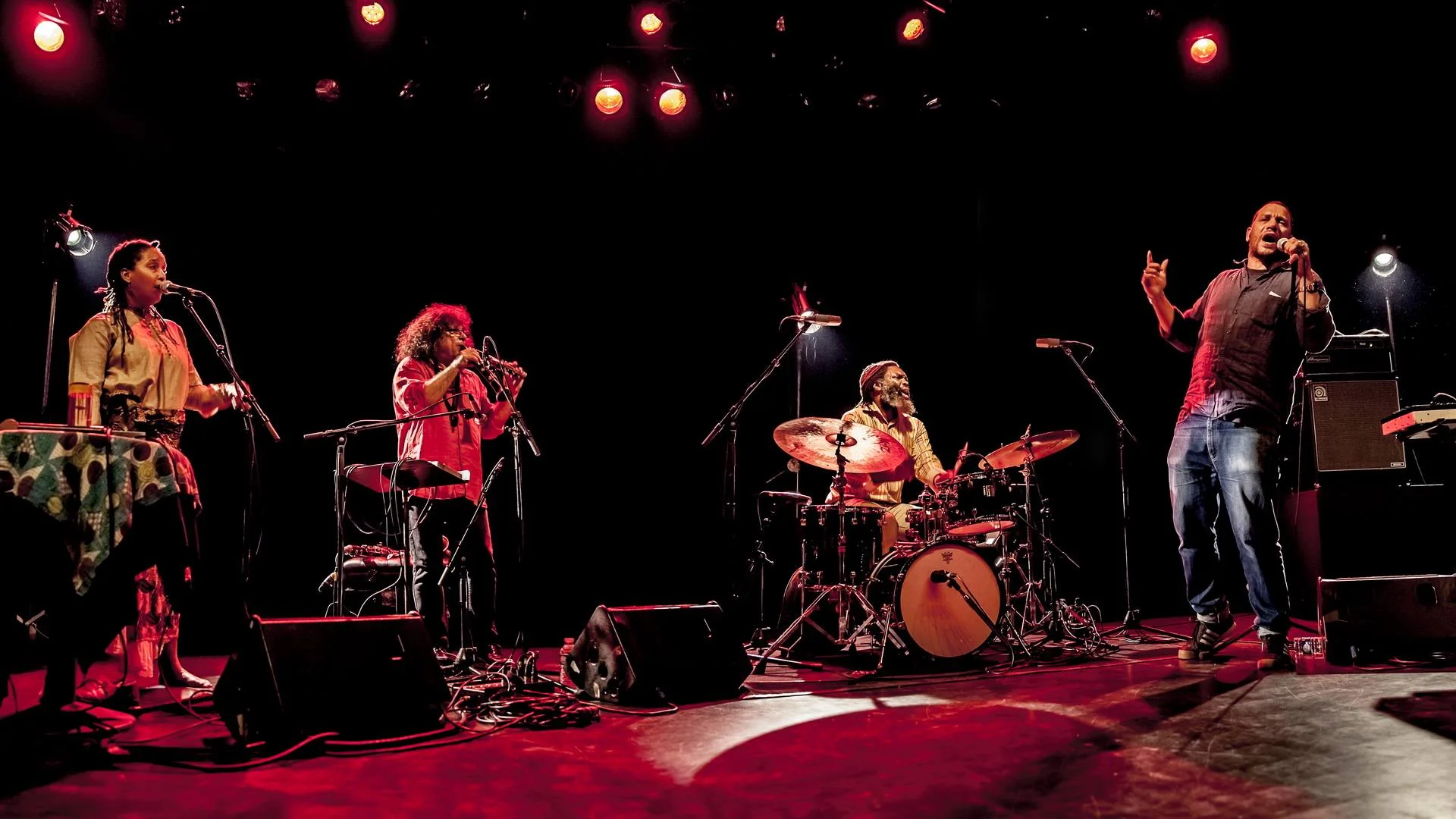 Lineup: Mike Ladd – improvised poetry/lyrics, EMS synth Mankwe M N Ndosi – voice, poetry, story, texture Sylvain Kassap – clarinets Dana Hall – drums Photos - courtesy of "Rémi Angeli"