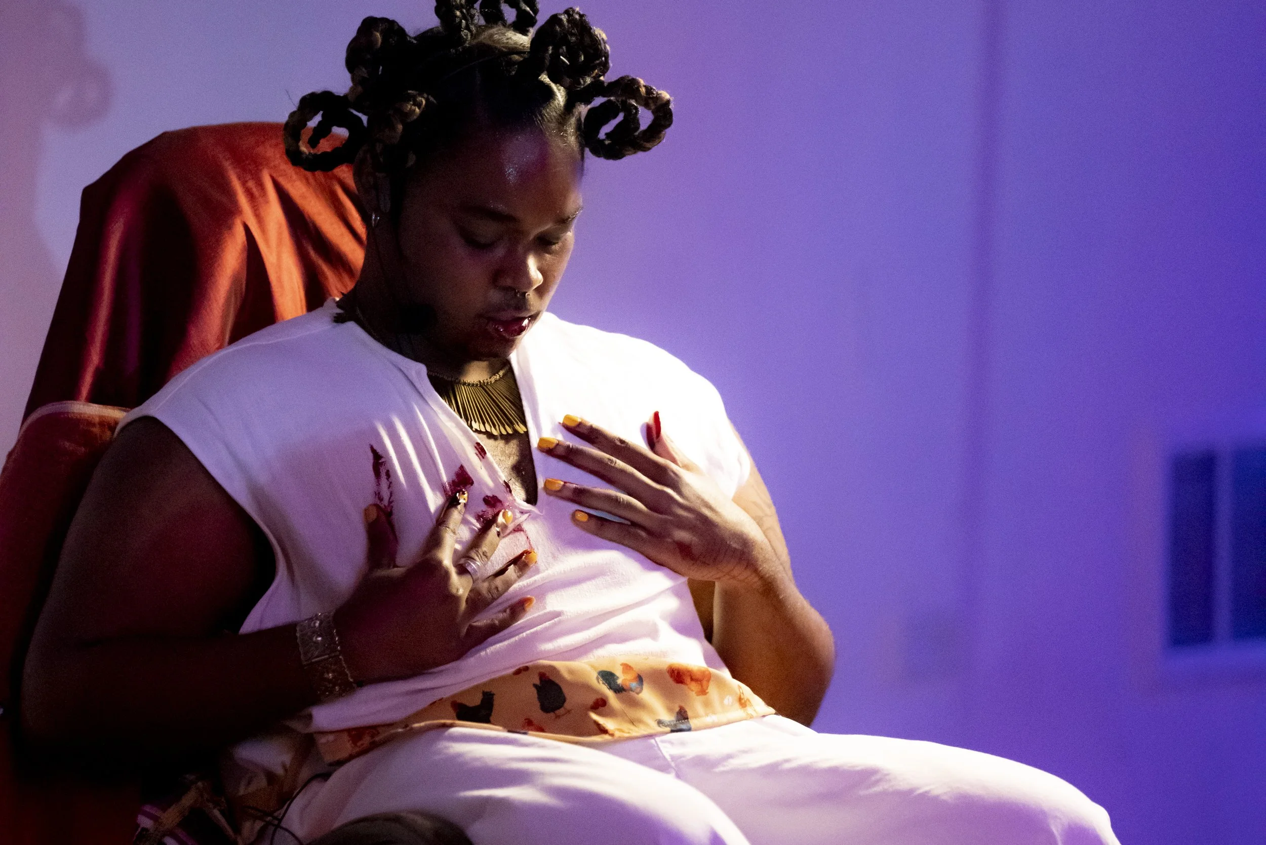 Kezia Waters is a Storyteller/ Performance Artist located in Chicago, IL. Their work lives between the worlds of ethnography, folklore, ritual and the living archive. Through surrealism they try to find things that are Holy, Whole, and Holds. A humanist fairy. They have performed in the Biennale d’art Performative de Rouyn-Noranda of Canada, Dazibao Gallery in Montreal and Recto- Verso in Quebec City and numerous galleries around Chicago. Kezia was a 2023 In-Session Fellow at ThreeWalls, studying the Performance and Folklore of Zora Neale Hurston and also an Adjunct Professor of Acting & African American Theatre at Central State University in Wilberforce, Ohio. Kezia is also a Jeff Award nominated Theatre Director.